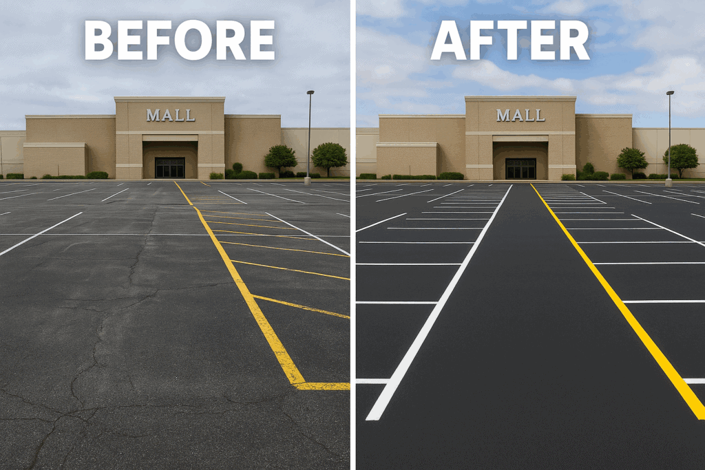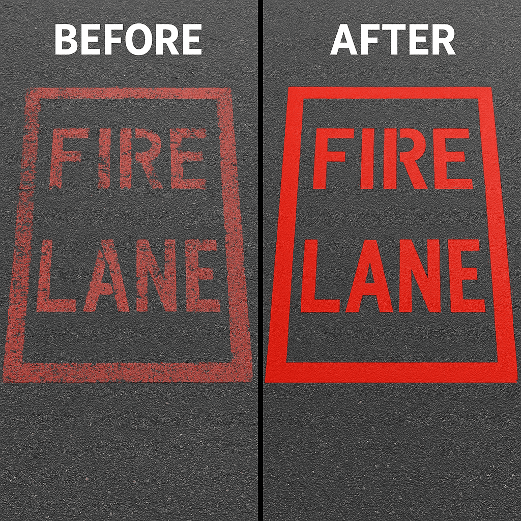 - Maintenance and Restriping: Regular maintenance is essential for preserving the longevity and effectiveness of parking lot striping. We offer restriping services to keep your parking lot looking fresh and well-maintained over time.